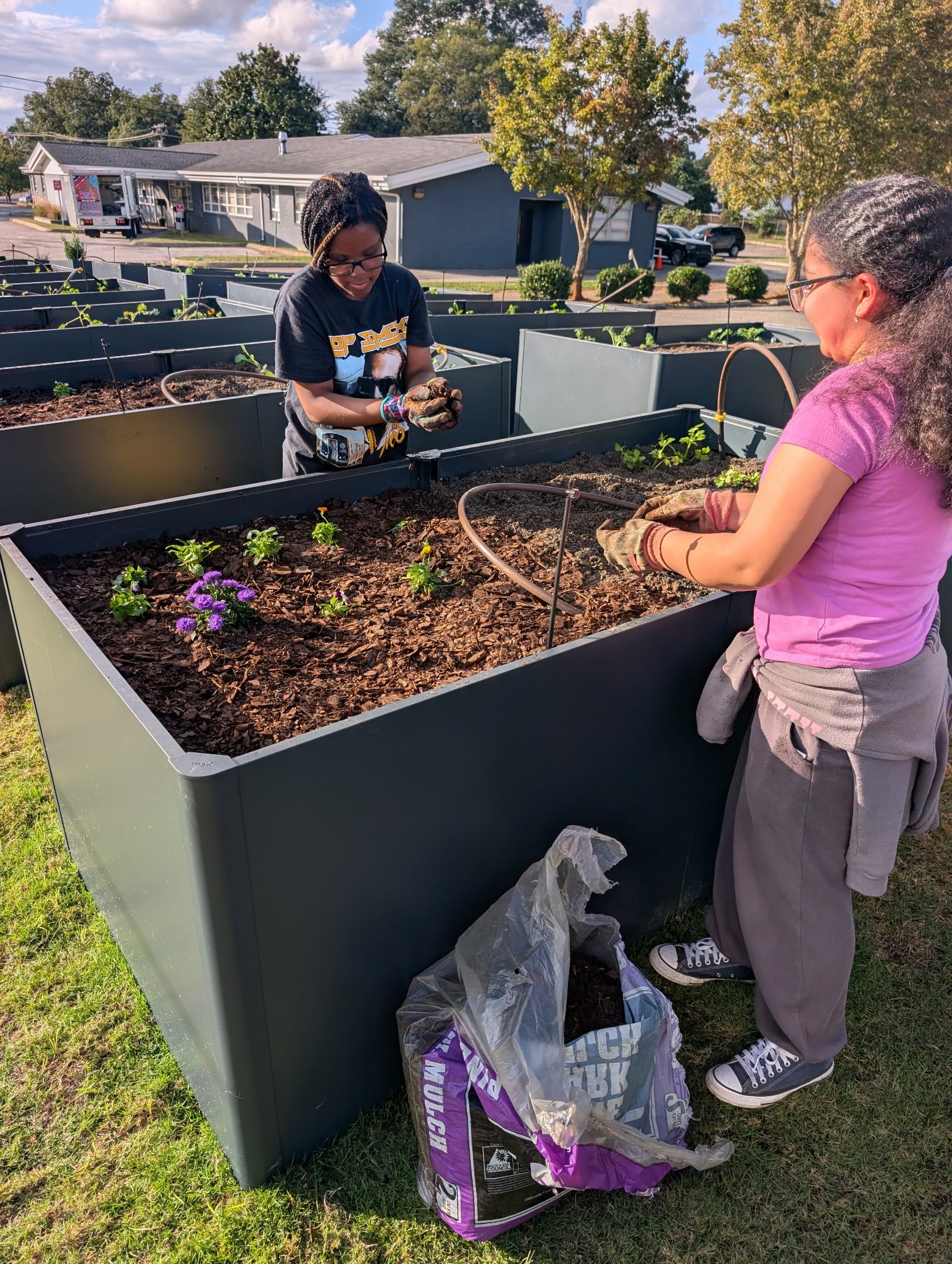 In 2025, Mill Village Farms made the move to our new space! We are now located at Mill Village Ministries’ Hub at 1186 Pendleton St. We have many garden beds filled with seasonal produce and blooms.